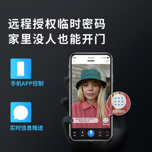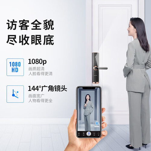 智能锁带有猫眼摄像头,超广角可视,连接手机APP即可随时查看门外动静,轻松应对陌生访客。