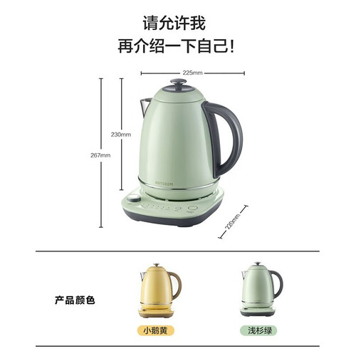这款电热水壶含有长时间保温,耗能比较低,更加省电,采用大功率烧水,不用久等。含有双重保险,可以防止烧干。