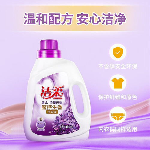 这款洗衣液为不含磷洗衣液,节能环保,符合环保理念,采用汉古植物洁衣配方,能够深入衣物纤维,清洁彻底。