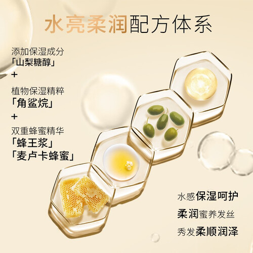 蕴含双重蜂蜜精华、角鲨烷,加乘独创发芯赋源技术,修护并为秀发注入满满能量,由内至外深层修护,保湿润泽蜜养发丝。