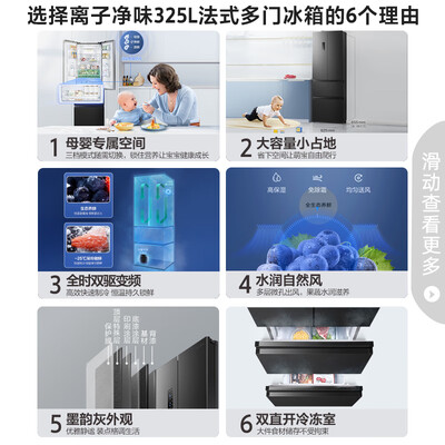 搭载离子净味科技,除菌净味的同时,还能除乙烯,让食材能保持本味。多层微孔出风设计,出风密集,可更温和的补充舱内温度。