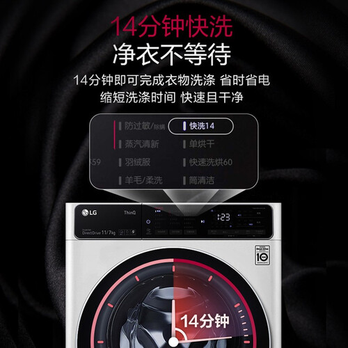 利用蒸汽小分子渗透洁净衣物,具有除菌除螨和除异味的效果。配备了14分钟的快洗功能,快速洁净更省心省时。