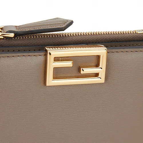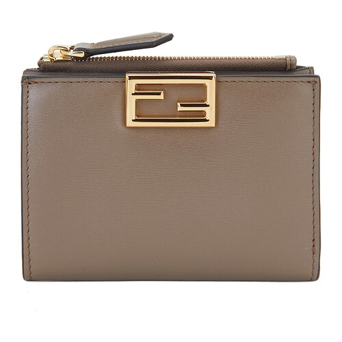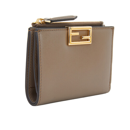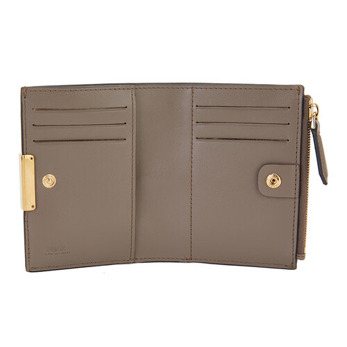 芬迪棕色牛皮对折短款钱包