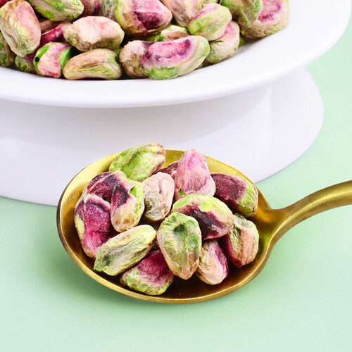 采摘当地鲜果进行加工的开心果,品质方面无需担心。在制作过程中,没有添加任何调味剂,让人品尝开心果原本的味道。