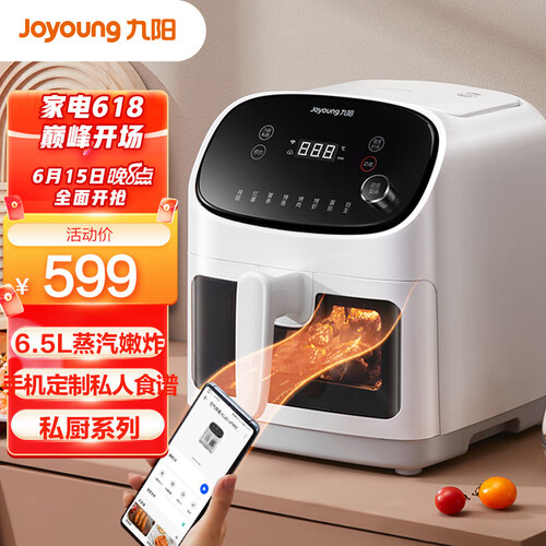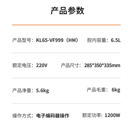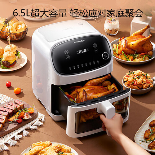 6.5L大容量炸篮,能应对多人聚餐。设计可视化大视窗,方便观察食材的颜色变化。360°循环热风烘烤,让食物的受热更均匀。