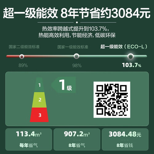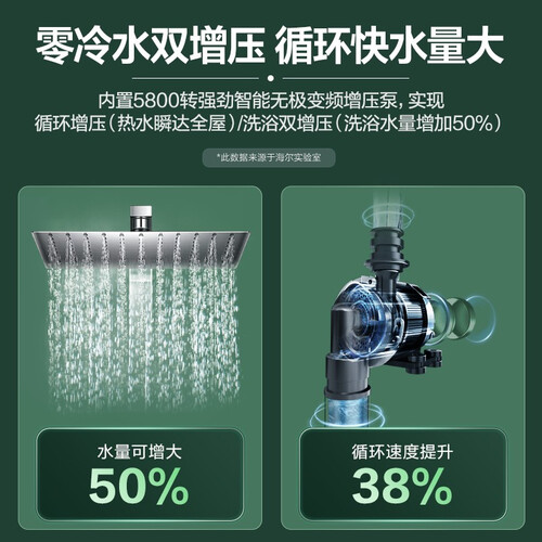 采用新一级能效,节能环保经济实惠,增强能源使用率,整天开启低耗电。专利零冷水智能双增压,热水轻松达全屋,实现大水量洗浴。