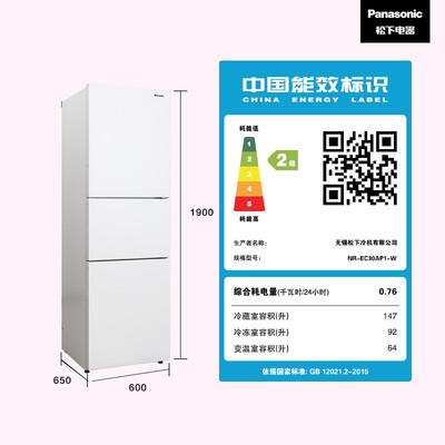 松下无霜净味三门冰箱