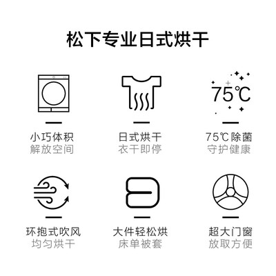 创新将冷凝器与风扇二合一,大大减少了烘干机的体积,有效节省空间。搭载环抱式吹风,烘干更均匀。