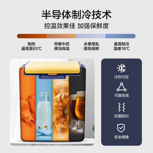 半导体制冷技术,可以使得控温效果更好,减少温度波动,充分锁住新鲜。半导体制冷无滑动部件,不怕颠簸。
