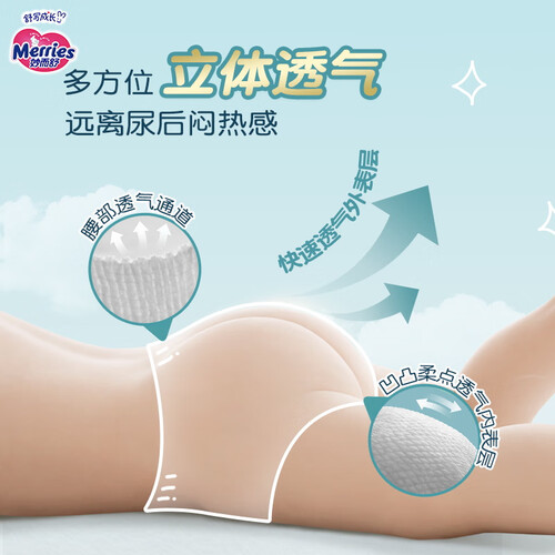 2.5倍风琴式弹力腰围,贴合腰部不易下滑,让宝宝随心探索小世界。多方位立体透气设计,让宝宝小屁屁时刻干爽。