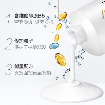 洗发水中含有维他命原B5,提供营养渗透力,滋养发根,直达发芯。同时蕴含修护粒子,修护干枯易断,减少发丝脆弱。