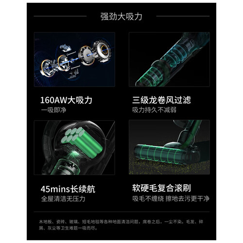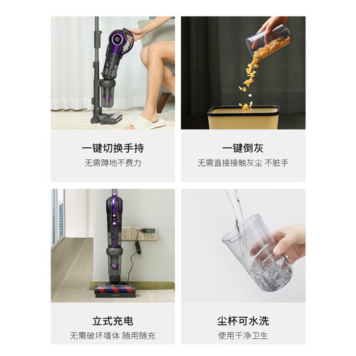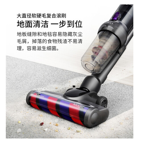 采用专利立式手持多功能设计,具备自行走功能,打扫过程不易疲累。结合立式设计,可随时停放,无需靠墙放置。