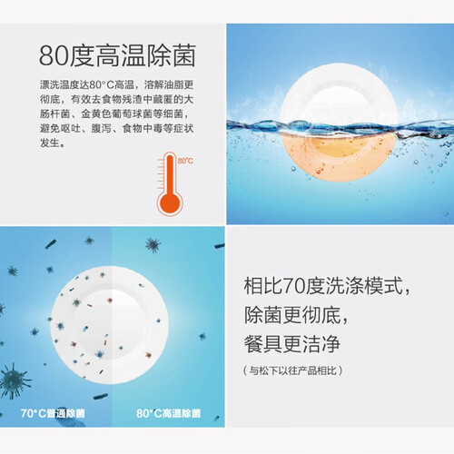 80°高温水流冲洗,轻松分解重油污,快速冲刷带走污渍。拥有软化水系统,减去除垢烦恼,方便快捷每一天。