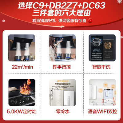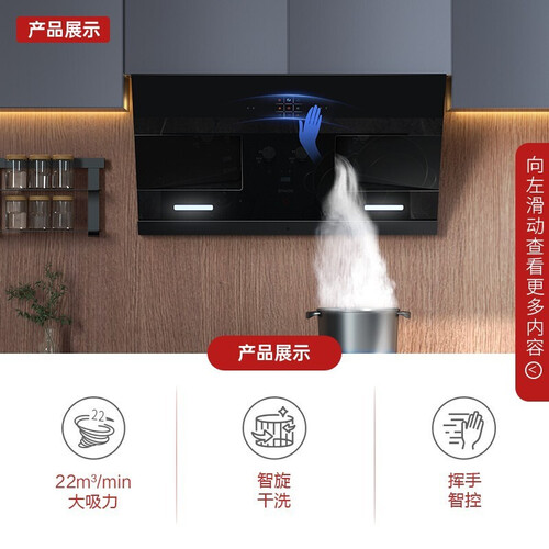 5.0kW聚能灶,火力强劲爆炒的食材口感香脆,尽享舌尖上的美味。免拆洗的智旋干洗功能,为后续清洁带来方便。