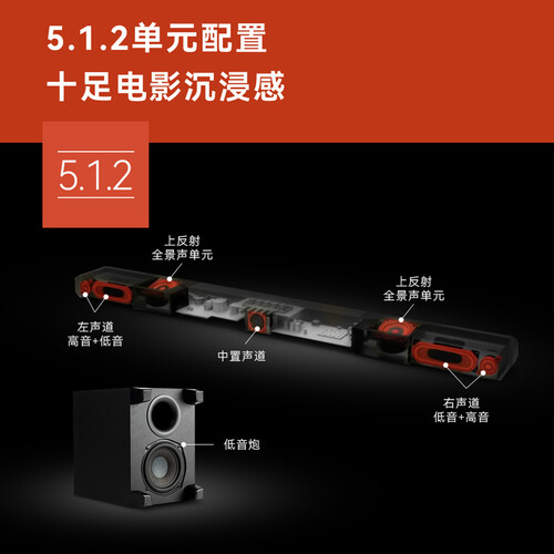 获得杜比全景声认证,拥有天空声道的回放音效,让你沉浸于360度声场之中。支持蓝牙5.0,稳定连接回音壁,不错失音乐细节。