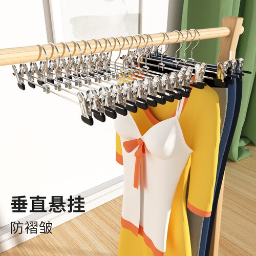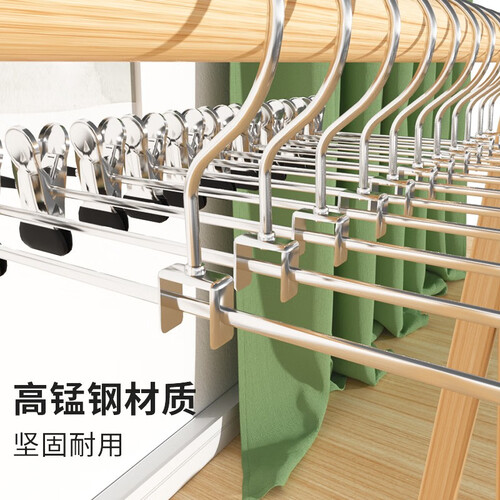 优选高锰钢材质做成加厚骨架,承重性强,不易弯曲或断裂。夹子经纳米浸塑包裹,夹裤子不留痕,不用担心划伤衣物。