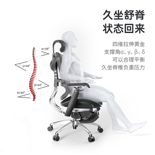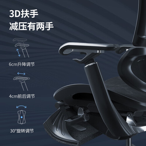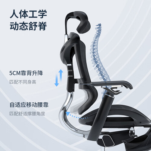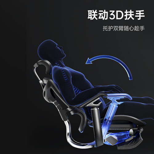 拥有大C仿生弧面设计,贴合腰部更加舒适,有助为腰部减轻压力。搭配多种调节功能,方便双臂摆放,无惧久用电脑。