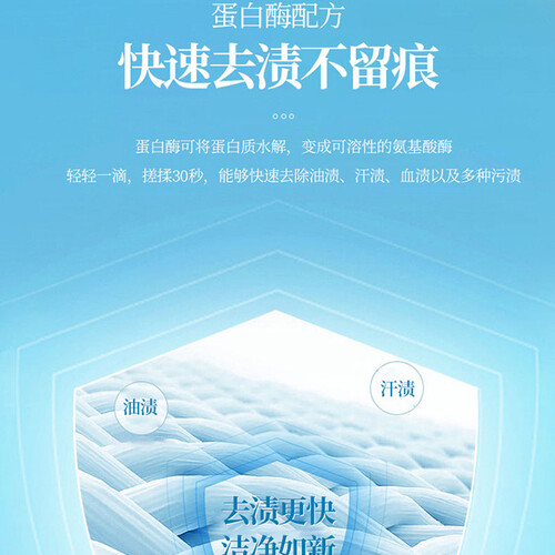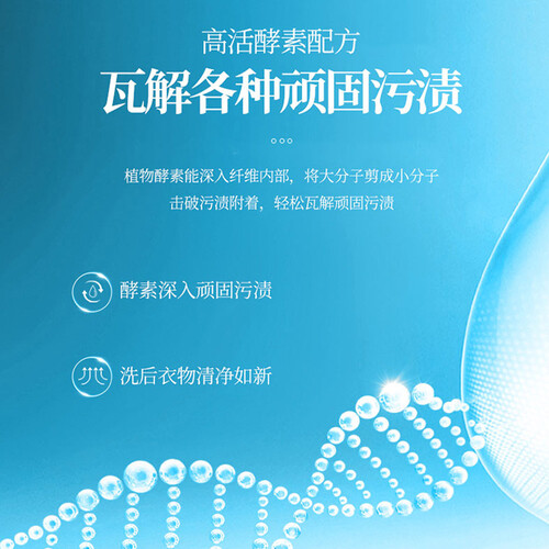 高活性酵素配方,能够深入纤维内部,从源头清除污渍;蓝桉叶提取物温和无刺激,呵护您的肌肤。