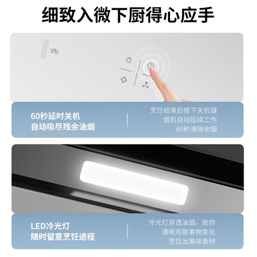 简约优雅的外形设计,与现代化厨房风格自然融为一体,视觉体验更舒适。三面立体拢烟,防止四处逃逸,厨房清新无异味。