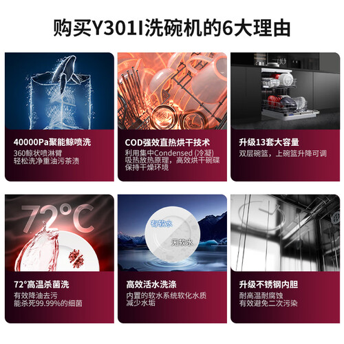 拥有13套中式碗篮大容量,一次就能轻松收纳6到8人的餐具,节省洗涤时间。支持强力洗,无惧重油,高温轻松去污除菌。