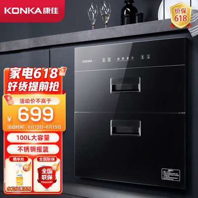 100L的大容量设计,可一次清洗多个碗碟,适合聚会后洗餐具用。下室高温保洁,高温烘干后不残留水分,碗碟干爽。