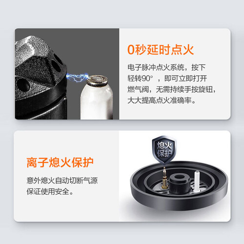采用防爆钢化面板,耐高温抗腐蚀,耐用结实易于清洁。支持离子熄火保护,发生意外时便切断气源,为家人健康安全保驾护航。