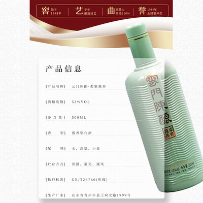 该酒产自青州,常年温度保持在16-23℃之间,带来适宜的酿酒环境;严格挑选优质原料,云门山洞经过岁月发酵。