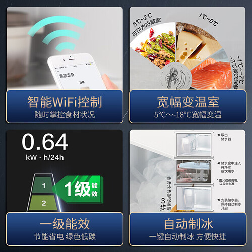 配有宽幅变温室,可根据不同食材进行调节,有效延长保鲜期。加入水便可自动制冰,简单实用,畅享惬意冰饮。