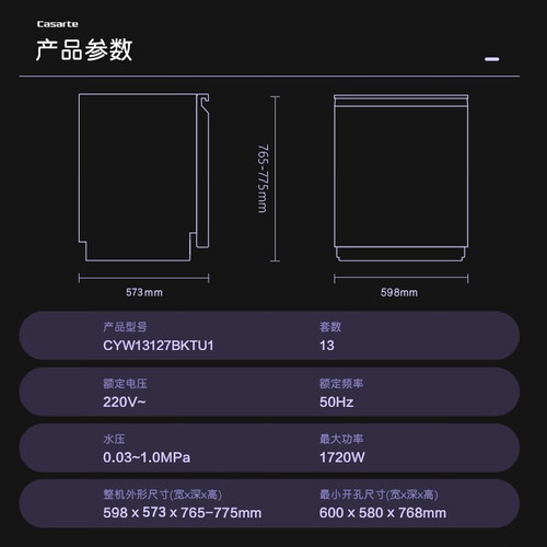 卡萨帝 优雅嵌入顶控洗碗机