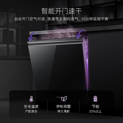 纯平直嵌设计,专为中式厨房贴心打造,嵌入不突兀,绽放浑然天成之姿。高端空气洗,丰沛微蒸汽净彻餐具,守护孕妈脆弱肠胃。