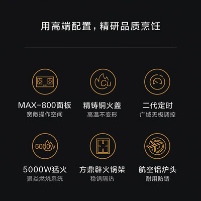 具备先进的定时功能,炖菜不用时刻看守,到点准时开饭。甄选800MM的钢化玻璃,提供充足的做饭空间,两眼同烹一起上桌。