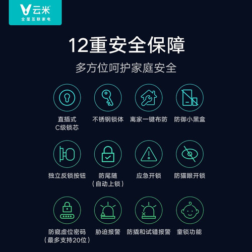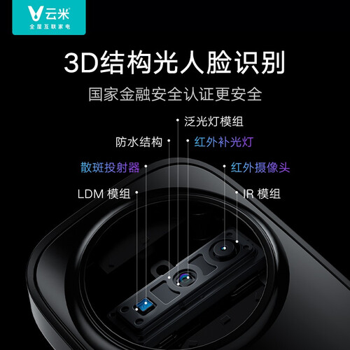 3D结构光人脸识别,刷脸秒开。红外LED补光技术,无惧晚上光线暗。拥有手机蓝牙、卡片等六种开锁解锁方式,开启科技生活。