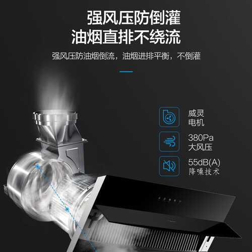 强风压直排系统,排烟畅快不倒灌,无惧公共烟道,放心烹饪。微弧流线型造型,美观有颜值,百搭各种厨房空间。