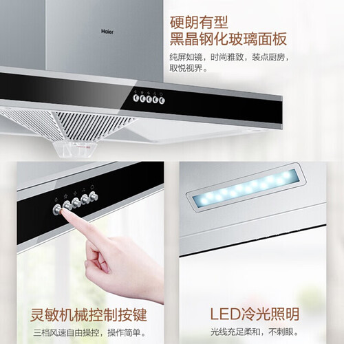 一体式无缝衔接的拢烟腔,没有多余的缝隙和螺孔,油污不易粘留,清洁一抹即可,方便省力。顶吸的款式,排烟效果更好。
