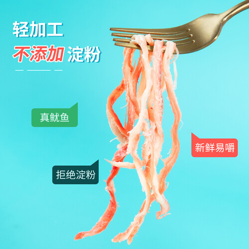 严选上好品质的鱿鱼制作而成,没有添加淀粉,真材实料,营养美味。轻加工制作,产品色泽更加鲜亮,香味扑鼻。