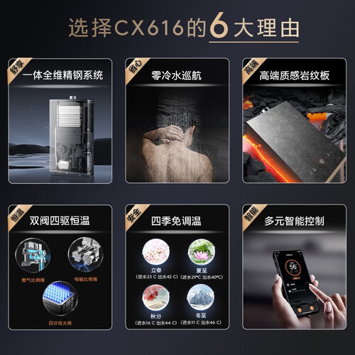 岩纹风格的面板外观,增强美感度,彰显艺术风格。提供16升澎湃大水量,沐浴安心,全家接力洗,轻松搞定多口之家。