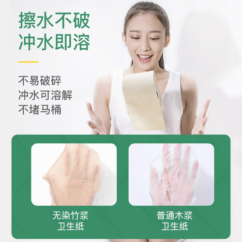 加厚柔韧不易破,擦拭不脏手,有效避免尴尬。具有冲水即溶的特点,用后可直接扔在马桶,更好地保持卫生间干净整洁。