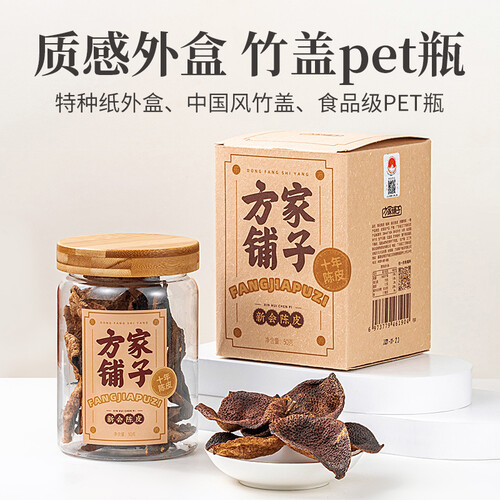 国风竹盖设计,锁住陈皮香味,不易流失保证口感。轻盈易折,外观凹凸纹理清晰。