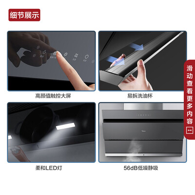 20m³/min飓风大吸力,尽情爆炒无惧油烟,清爽下厨油烟不沾身。四维立体环吸,四周进风负压面积更大,吸排效果好。