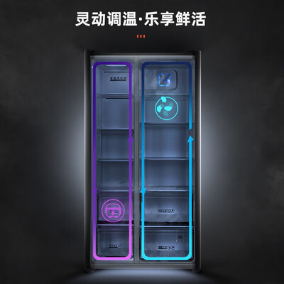 时尚美观的星空蓝面板设计,触感细腻的动感纹理层,可耐腐蚀。配备了加宽设计的门搁架,大空间更容易储存。