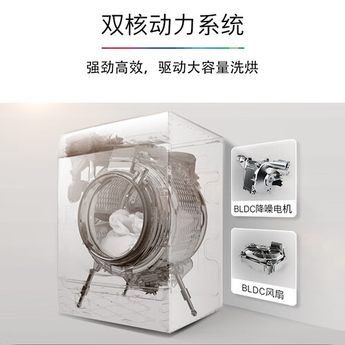 采用德国智控速烘技术,均匀烘干衣物更蓬松舒适,不易发硬。搭载双核动力系统,高效洗烘更能节省时间,便捷贴心。