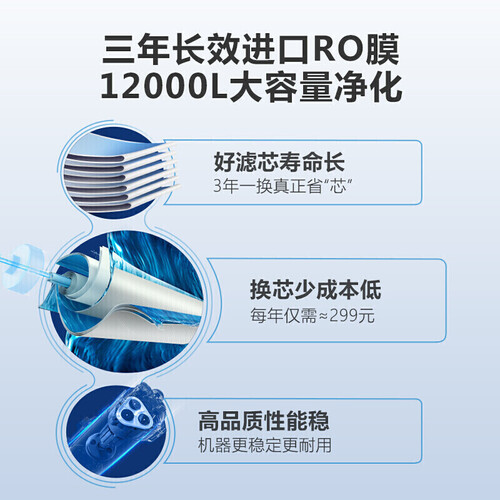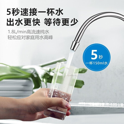 搭载了智能双冲洗技术,能够有效冲洗滤材上面的泥沙杂质,减少堵塞情况。具有一级水效,带来更多纯水。