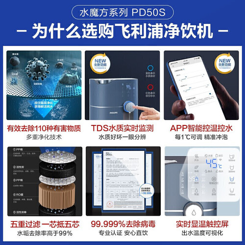 采用UV抑细菌技术,防止水箱滋生细菌,畅饮鲜活,避免二次污染。TDS水质实时监测,蓝红灯提示水质,水质一目了然。