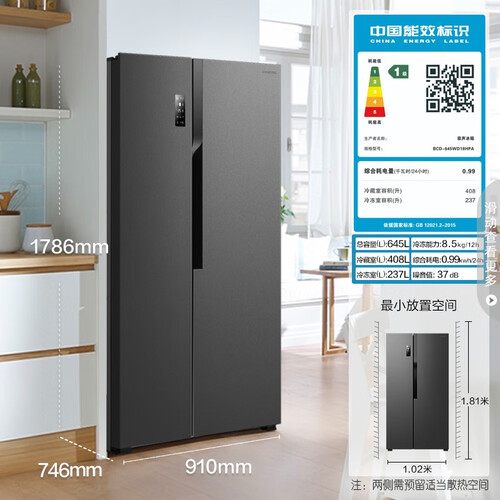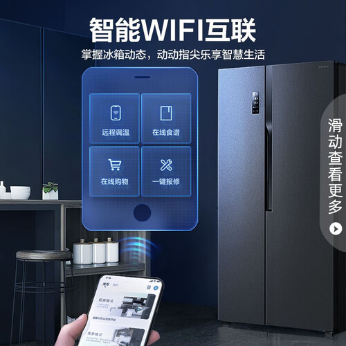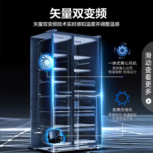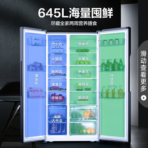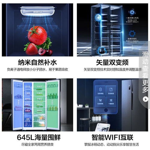 大容量设计,可以随心存放,满足全家喜欢的菜品。风冷无霜很贴心,解放双手完全无异味,省时同时也很省心。