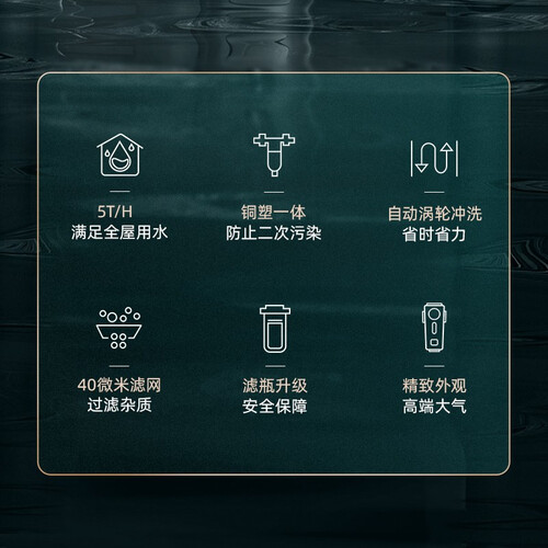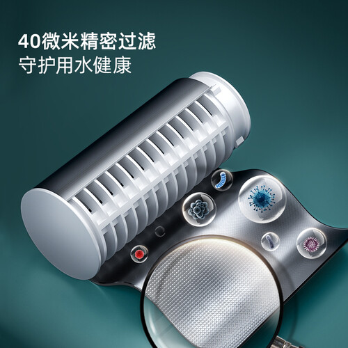 内置40微米滤网,有效去除水中的大颗粒杂质,同时避免滤芯堵塞。外观尽显高端大气,做工优良品质出众,是不可多得的生活助手。