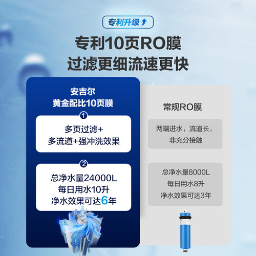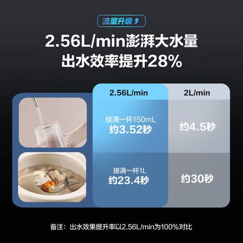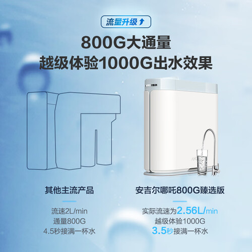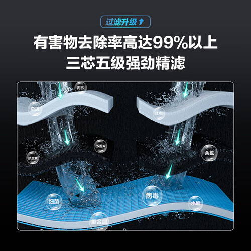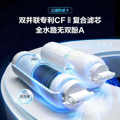 CFⅡ复合滤芯双芯并联,配合RO反渗透滤芯,精滤水质,出水放心喝。800G大水量,出水快速,家人饮水不排队。
