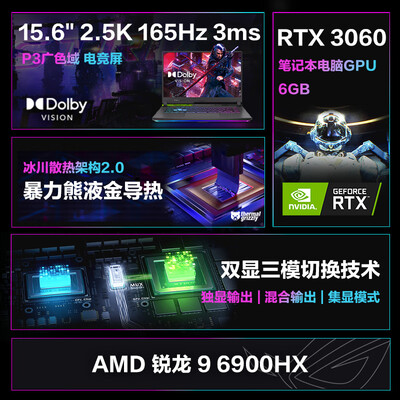 使用2.5K广色域电竞屏,畅享精美画面。双插槽设计,可以扩展至64G,不用担心容量问题。带有双显三模切换技术,更能应对不同的需求。