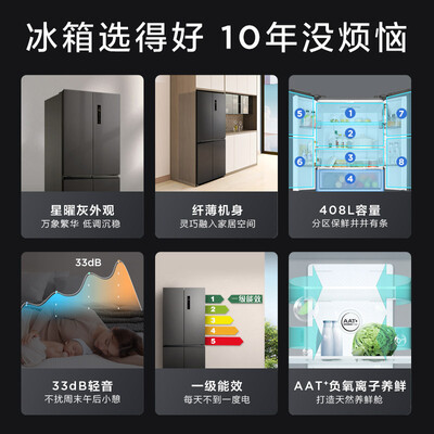 采用AAT负氧离子养鲜技术,能够快速吸附细菌,持久维持食材新鲜。支持TCL+APP智能互联,可以随时调节温度,简单便捷。