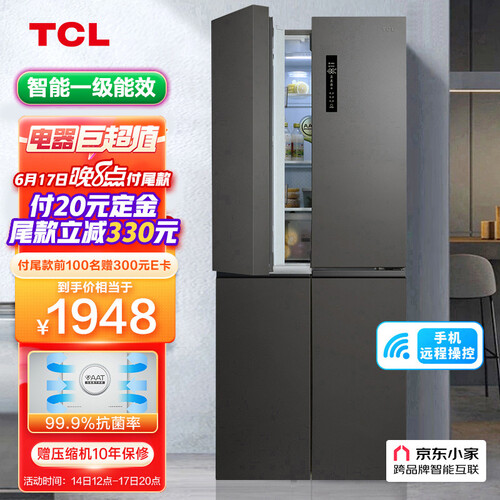 TCL 520升对开门冰箱