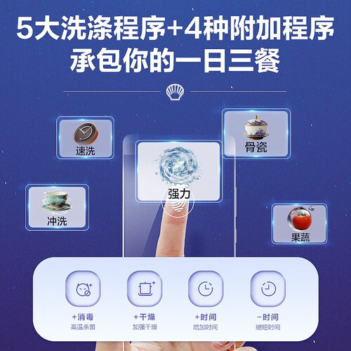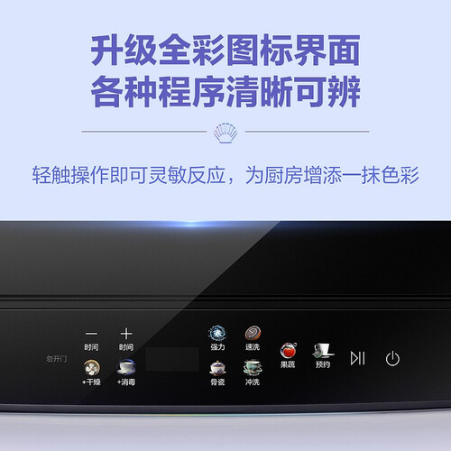 升级全彩图标界面,清晰灵动,餐具油污一触即净,点亮单调日常。机身小巧,辅以贝启式设计,摆放、壁挂任你选择,融入中式厨房。